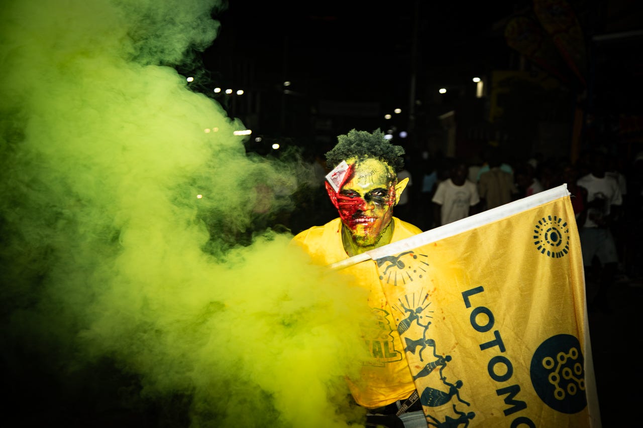 Après les danseurs et les masques de papier mâché, à la nuit tombée, les fanfares et les DJ ont pris le relais sur la rue principale de la ville, là où se déroule le défilé, qui est aussi une compétition.