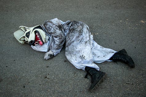 Certains maquillages étaient d’ailleurs très élaborés dans cette fête où l’horreur côtoie la beauté et les commentaires politiques. La journée, plus familiale, laisse place en soirée à des fêtes où l’alcool coule à flot.