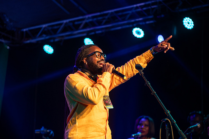 BelO était la tête d’affiche de la troisième soirée du festival sur la grande scène du Karibe. Le chanteur, connu pour ses succès pop, a intégré depuis quelques années beaucoup d’influences jazz dans ses productions, ce qui en fait un habitué du festival.